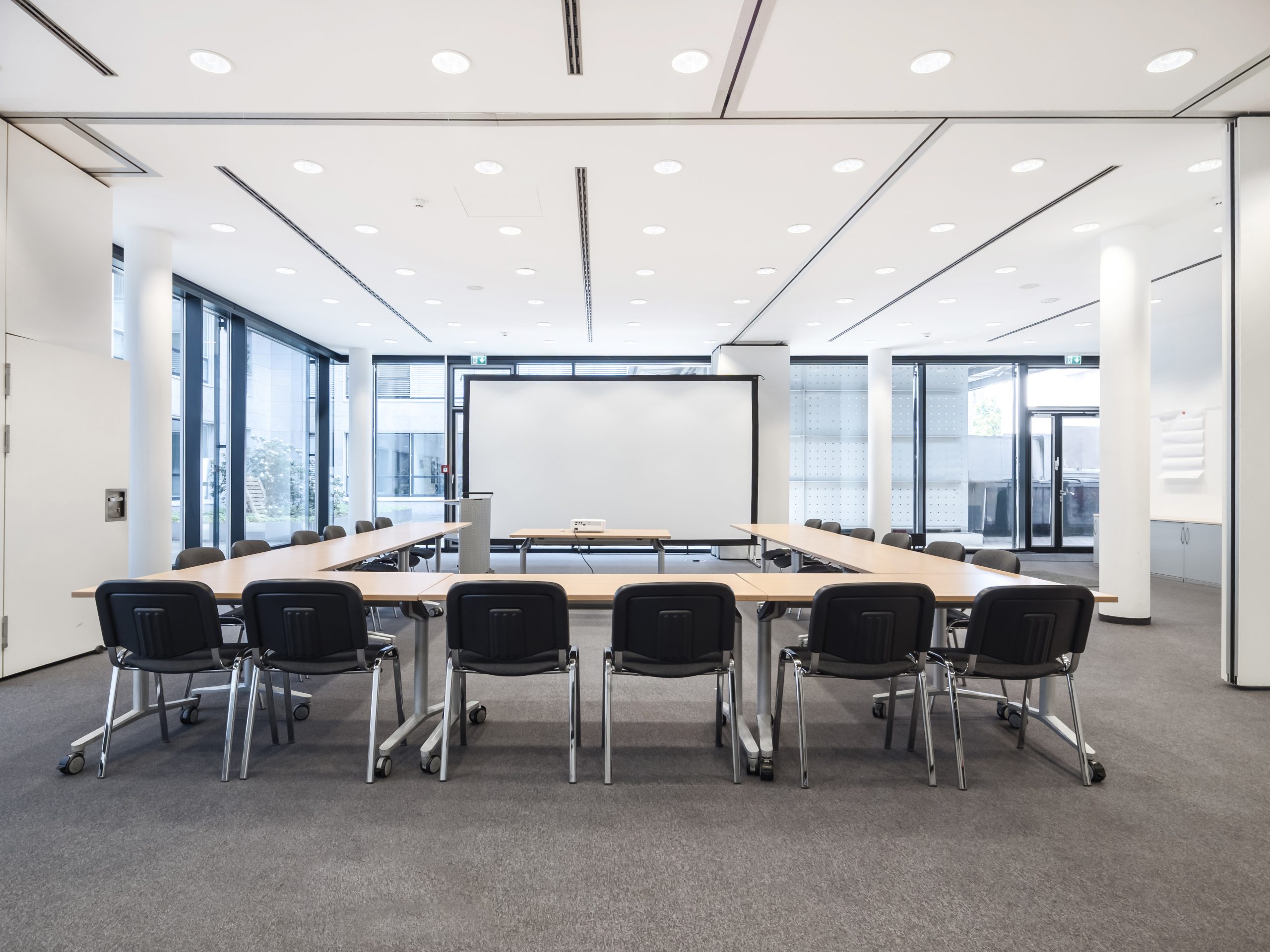 Located in Frankfurt-Niederrad’s dynamic Lyoner Quartier, Campus Carré offers a modern, fully equipped conference space designed for corporate meetings, presentations, workshops, and events. With a capacity of up to 100 people, the space can be divided into two separate rooms of 50 people each, offering full flexibility for events of all sizes.